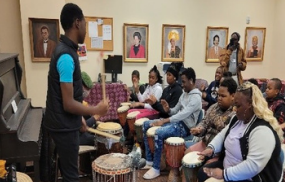 Youth participating in a fun art activity, inspired by the works of David Gaither.