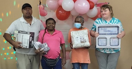 THA's resident advisory board gathered to celebrate Breast Cancer Awareness Month. Board members gifted a previously active member with a gift basket and flowers to wish her well on her journey/fight against breast cancer.
